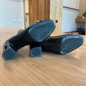 Approximately a 2.1" heel. Super comfy to walk in. Retailed for $398.