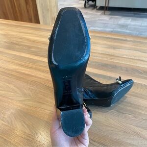 These are the Orton boots in solid black with buttery soft nappa leather and a patent leather cap toe.