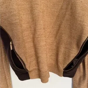 Anne Klein Tan and Brown Crew Neck Sweater side unique zippers