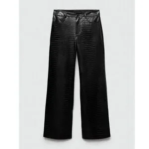 Stylish black croc-embossed straight leg pants. Perfect for a chic look.
