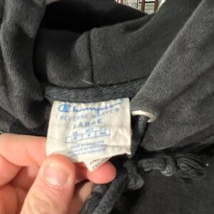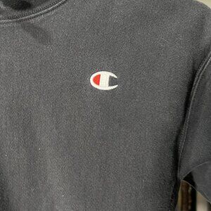 Vtg Champion Reverse Weave Stitched Logo Pullover Hoodie Black Size Kid's Large
