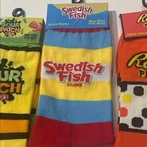 3 Sour Patch Kids, Swedish Fish, Reese's Pieces Crew Socks Set BUNDLE OF 3