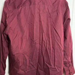 Elegant deep red shirt with subtle stripes. Classic button-up design by Van Heusen. Burgundy with pinstripes neck size 15..15 1/2.