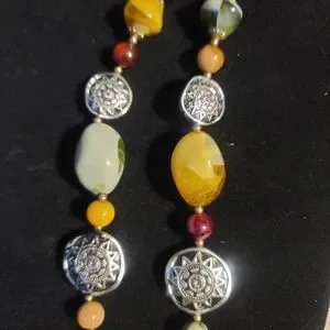 Vintage Boho Style Necklace Multicolored Beads Sunburst Coin Accents 23” Length
