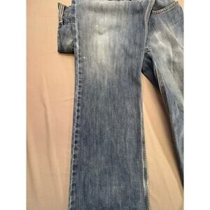 These jeans are in good pre-owned condition. There is noticeable wear on the back of the leg cuffs from working use and paint splatter (please see photos for close-up details). No major flaws otherwise. Plenty of life left — great durable work or everyday jeans.