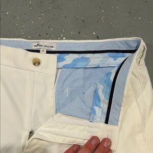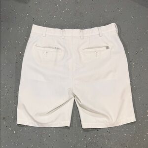 Stylish white shorts by Peter Millar. Ideal for casual wear. Features flat front design. Great for golf!