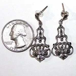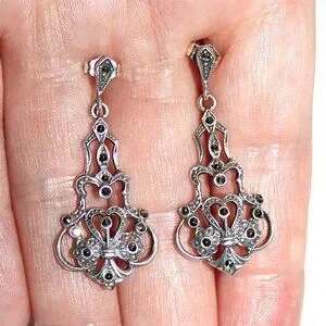 Sterling Silver Art Deco Chandelier Marcasite Earrings