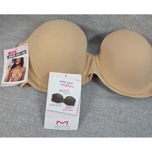 Maidenform Stay Put Strapless Bra 34C Custom Lift Pick Me Up Power Band Tan NEW