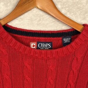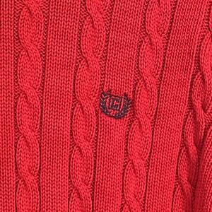 Chaps Cable Knit Sweater Large Mens Red Fisherman Y2K 90s Preppy Chunky Vintage