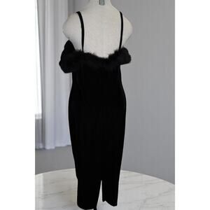 Vintage Nostalgia 90s Black Velvet Midi Dress Faux Feather Trim Size XXL USA