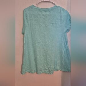 Elevate your wardrobe with this stylish V-neck top. Perfect for any casual outing, this top offers both comfort and elegance. relaxed fit Sz.S pit-pit 19",26" long in front,28 " Long in back Seaglass green NWT