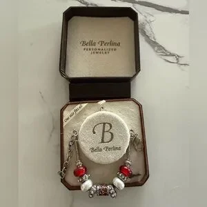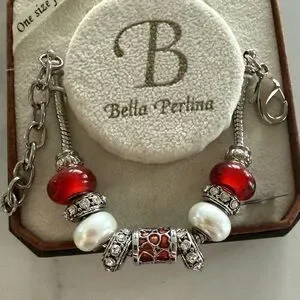 Chic Bella Perlina bracelet with striking red and silver beads. Ideal for enhancing any ensemble. Comes in original packaging. Never used.