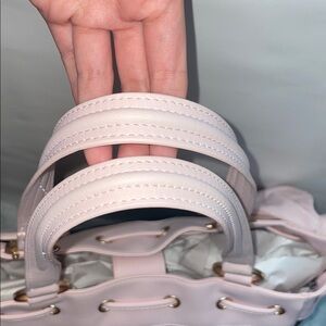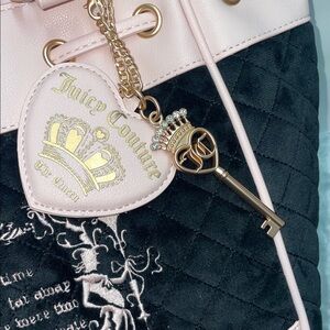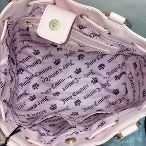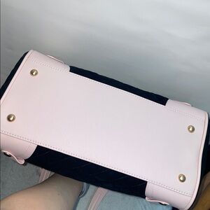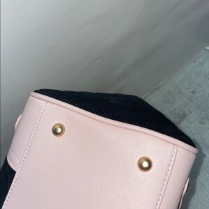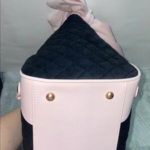 NWT black quilted polyester & blush pink vinyl Juicy Couture ‘Juicy Tale’ tote. No exterior/interior flaws or odors. The shoulder straps are not removable or adjustable. They are in new condition. The interior has 2 slip pockets & 1 zip pocket. No flaws or odors. 12.5”L x 11”H. 9.5” shoulder drop.