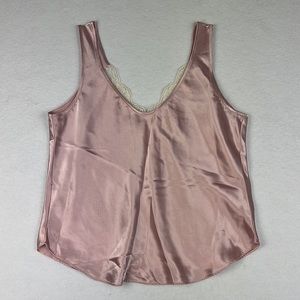 Elegant pink camisole with delicate lace trim, perfect for layering or wearing alone.