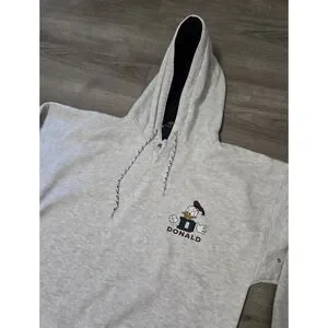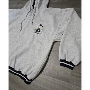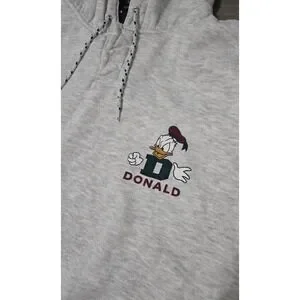 Vintage Disney Store Donald Duck Gray Quarter Button Hoodie Large/XL