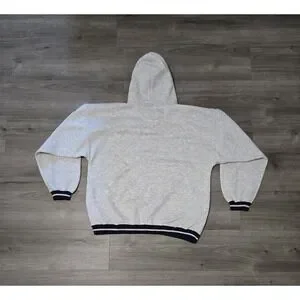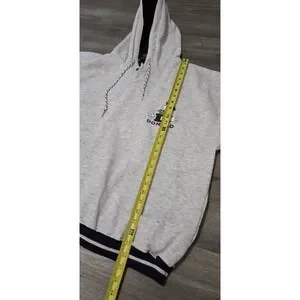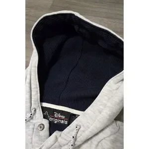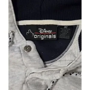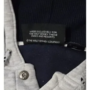 The Vintage Disney Store Donald Duck Gray Quarter Button Hoodie in size Large/XL is a nostalgic piece of Disney apparel suitable for adults of all ages. This unisex hoodie features the beloved character Donald Duck from the Disney franchise, making it a must-have for any Disney fan or collector. The gray color adds a timeless touch to the design, making it a versatile and comfortable addition to any wardrobe. The Hood has thermal lining and a drawstring. This was Made Exclusively for the Walt Disney Theme Parks and Resorts.