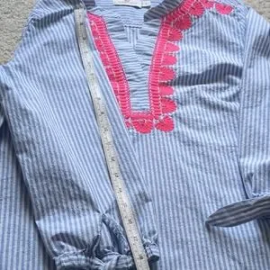 Gourgeous Chic blue striped top with pink embroidery. Please see pictures for measurements. Brand new without tags. Comes from smoke free home.
