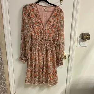 NWT Max Studio Floral Long Sleeve Dress - Pink and Orange in Sz XL