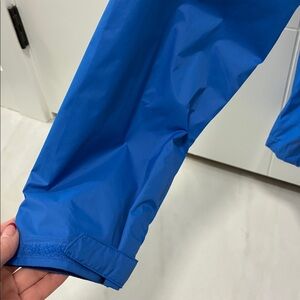 Water-resistant and breathable. Perfect for wet weather. Includes hood and zip front.