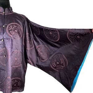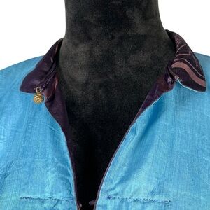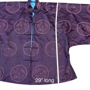 Purple Kimono Jacket Chinese Asian Button-Up Robe Tang Jacket Blue Reversible