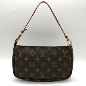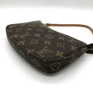 LOUIS VUITTON Authentic Brown Monogram Leather Pochette Mini Bag