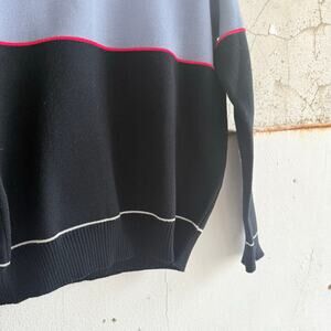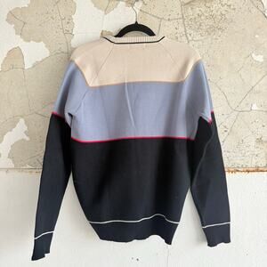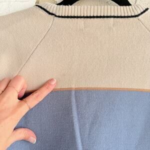 Y2K Colorblock Sweater Neutral Crewneck Classic Preppy Knit Pullover Mens L
