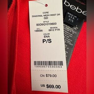 New with tags Bebe Bodycon Core Diagonal Mesh Inset Dress