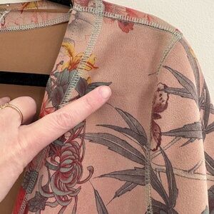 Make a statement this spring with this Anthropologie open longline layering coatigan, featuring a bold mauve floral pattern perfect for boho, eclectic, artsy, and vintage-inspired layering. Lightweight faux suede, open-front cardigan ideal for spring layering, casual chic outfits, festival style, and effortless bohemian flair. Elevate your spring and fall wardrobe with this Anthropologie Solitaire faux suede jacket—a versatile open-front coatigan perfect for layering! Crafted in a soft mauve floral print. Its lightweight, drapey silhouette makes it ideal for boho-chic, vintage-inspired, and eclectic looks. Wear it over jeans, dresses, or skirts for an effortlessly fashion-forward layered outfit.