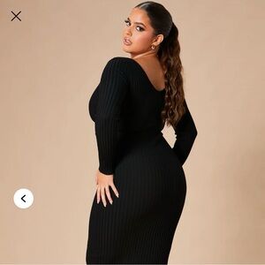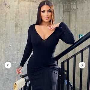 Fashion Nova Kallan Black Ribbed Knit Long Sleeve Dress