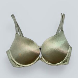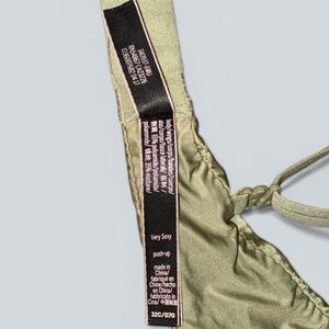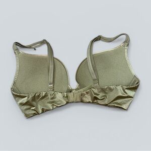 Victoria’s Secret “Very Sexy” push-up bra in a soft sage green satin finish. Features structured underwire cups with push-up padding for enhanced lift and shape.