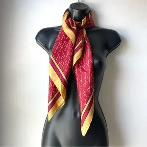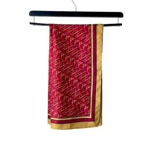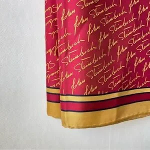 Josh Bach 100% Silk Scarf John Steinbeck Signature Print Red Square 35 x 35 In.