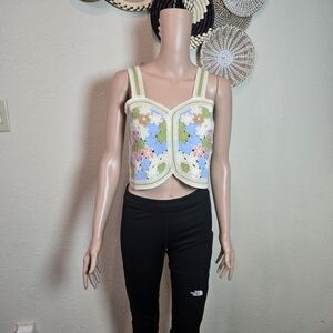 Pretty Little Thing Women Summer Crochet Tank Tops Colorful Floral Embroidery...