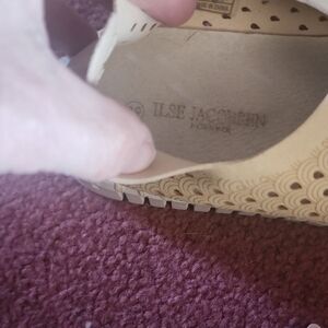 Stylish cream mules with perforated design. Easy slip-on style. Perfect for casual outings. Size 39 is an 8.5-9.