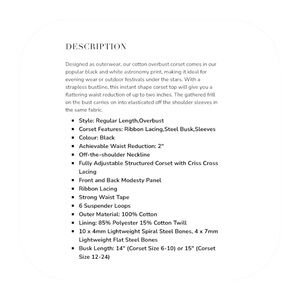 Corset Story size 14 (UK18) cotton astronomy corset top