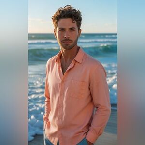 Upgrade your wardrobe with the 01. ALGO Men's Casual Button-Down Shirt in light pink. This shirt combines comfort and style, making it perfect for any casual outing.
