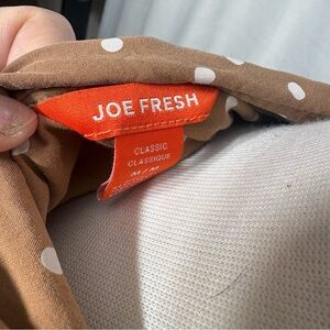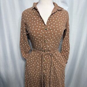 Brown Polka Dot Shirt Dress Midi Belted Long Sleeve Boho Neutral Medium button