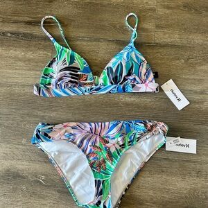 Hurley Women's Leafy Print Bikini in Blue and Green