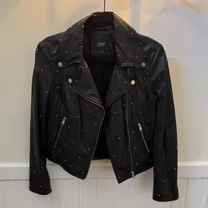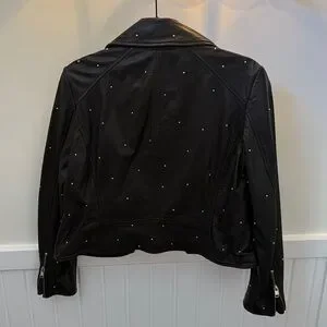 Lamarque Black 100% Leather Piper Studded Biker Jacket Size Medium EUC