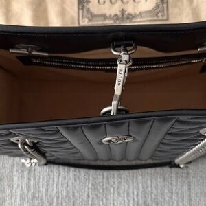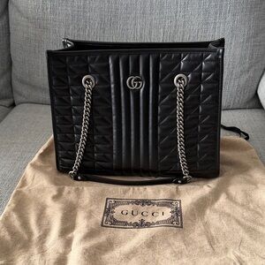 Sophisticated black quilted design. Features iconic Gucci logo. Stylish chain straps for a chic look. Like NEW as it’s in excellent shape barely ever worn.