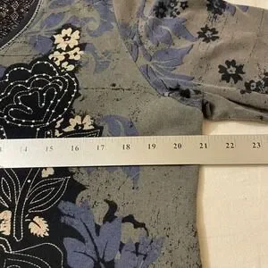 Vanilla Sugar Womens 1X Floral Lace Back Rhinestone 3/4 Sleeve V-Neck Top Gray