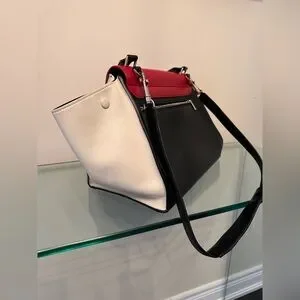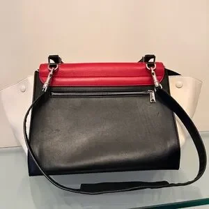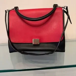 Chic Celine shoulder bag with bold red, black, and white design. Perfect for elevating any look.