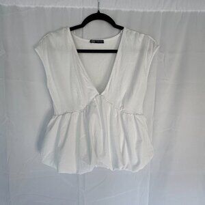 ZARA White Ballon blouse top Crop w/ Puff Sleeveless - 0311