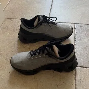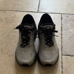 Sleek charcoal and ash sneakers by On Running. Ideal for both sports and everyday use. In wearable condition size women’s 7.5