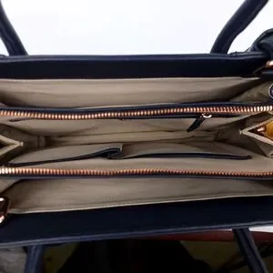 Organized Interior: Triple-compartment design with internal zip and slip pockets, and an external slip pocket for easy access to essentials