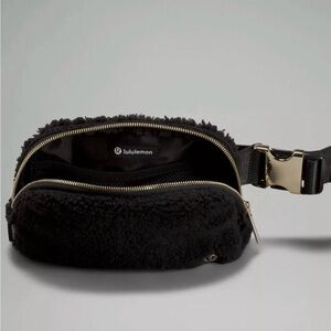 New without tags: Lululemon Belt Bag - Stylish black crossbody bag (crossbody, shoulder, or belt). Adjustable. Fleece texture. Perfect for everyday use.
