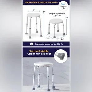 Drive Medical Adjustable Shower Stool Bath Seat – Lightweight & Stable