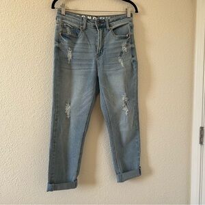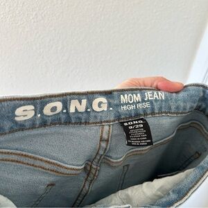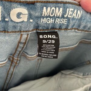 SONG Mom Jeans High Rise 9/29 Light Wash Blue Casual Rockabilly in good condition/ stretchy / distressing / can be worn rolled at the hem as well