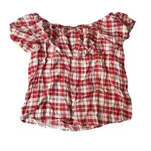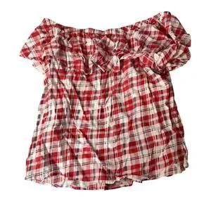 Skies are Blue Off-The-Shoulder Red Plaid Women's Top Size Medium