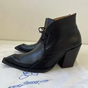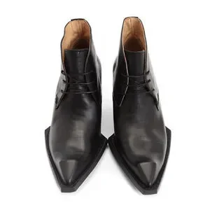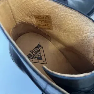 An iconic Fluevog design from the 1980s, popularized by its distinctive pointed toe shape, The Swordfish has been re-imagined and updated by John into the avante-garde sandal Surrealist Pizza. Using tough, aged Texas leathers and metal buckles on tunite soles, it's no wonder The Swordfish Surrealist Pizza are hunted down by fashionistas and goths everywhere. The Surrealist Pizza also includes a 3.5" leather-wrapped Cuban heel that brings the Fluevog flair way over-the-top. Stay Sharp!
