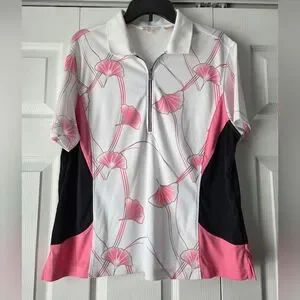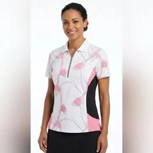 Discover elegance with this stunning floral Polo Golf Top. Featuring a beautiful pink and black design, it's perfect for any occasion.